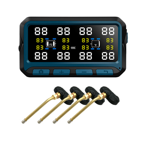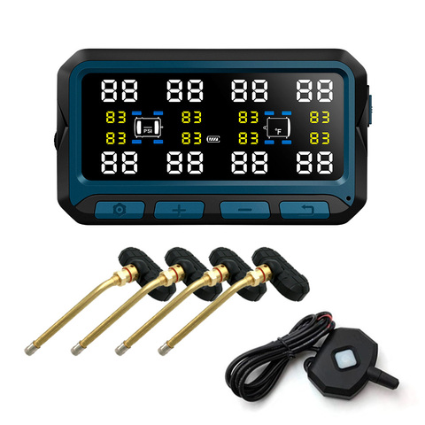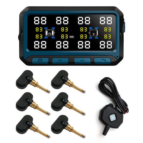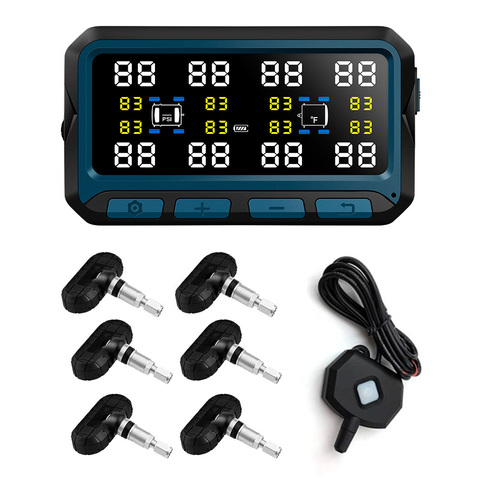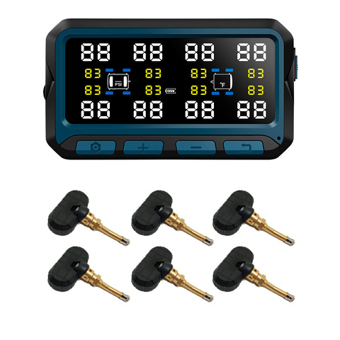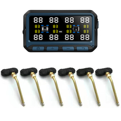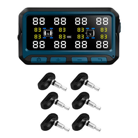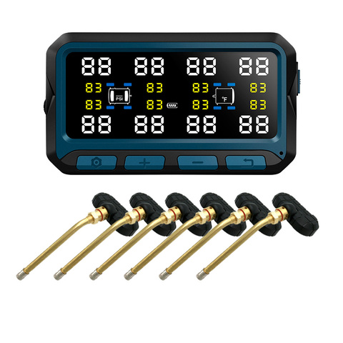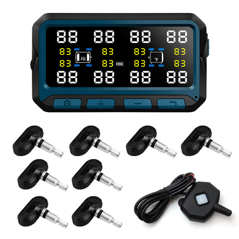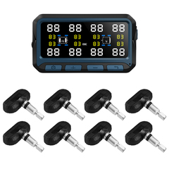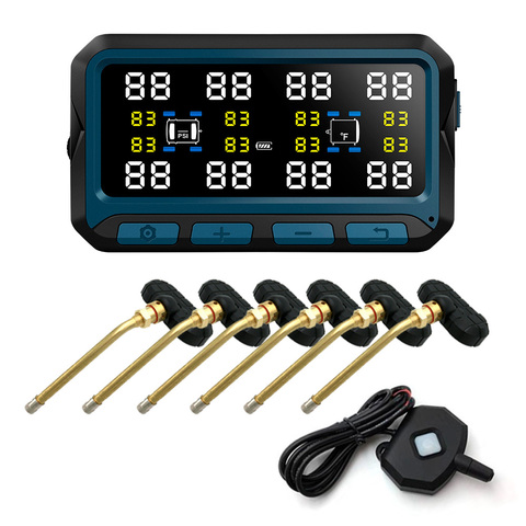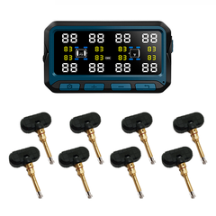 Система контроля давления и температуры в шинах (TPMS) TP708SN с внутренними датчиками с ниппелем (до 8 шт) для автомобилей с прицепом. Дисплей с солнечной батареей.