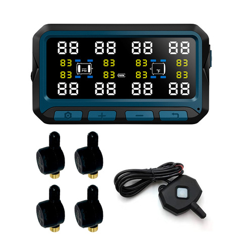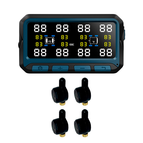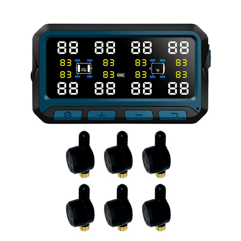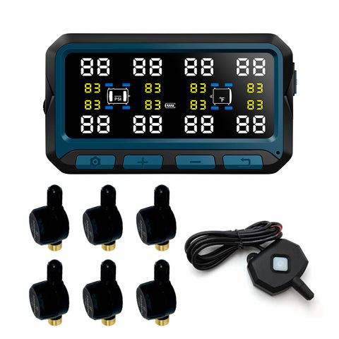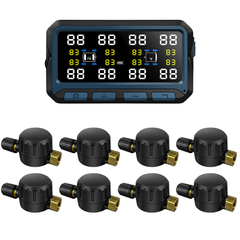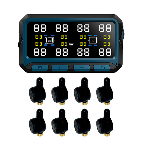 Система контроля давления и температуры в шинах (TPMS) TP708ST с внешними датчиками с ниппелем (до 8 шт) для автомобилей с прицепом. Дисплей с солнечной батареей.